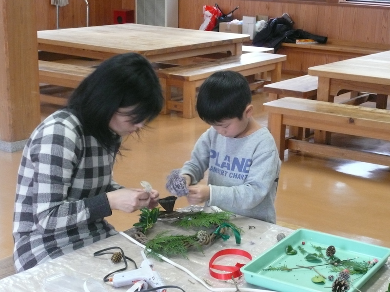 夏にはBBQParty 冬にはChristmas party、保護者の皆様にも参加いただき、ビーチで一緒に遊んだり、クラフト(クリスマスリース作り)をしたり、交流を深めます。